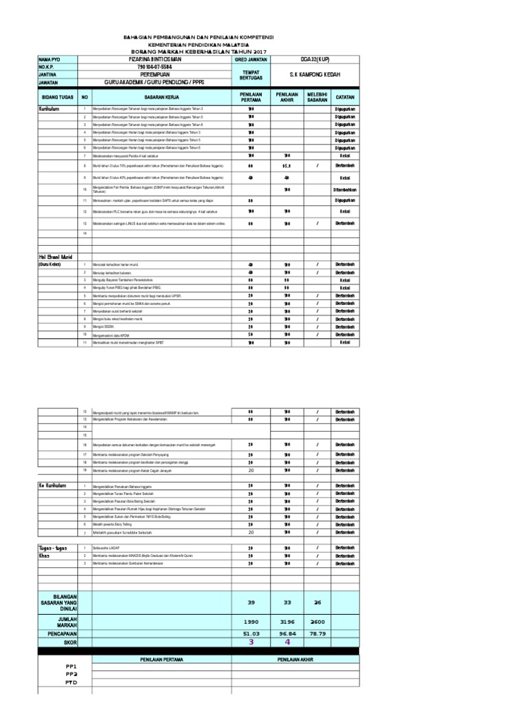 Borang keberhasilan contoh penulisan bk xlsx penilaian bersepadu pegawai perkhidmatan pendidikan borang keberhasilan tahun 2018 nama pyd norhaslina course hero