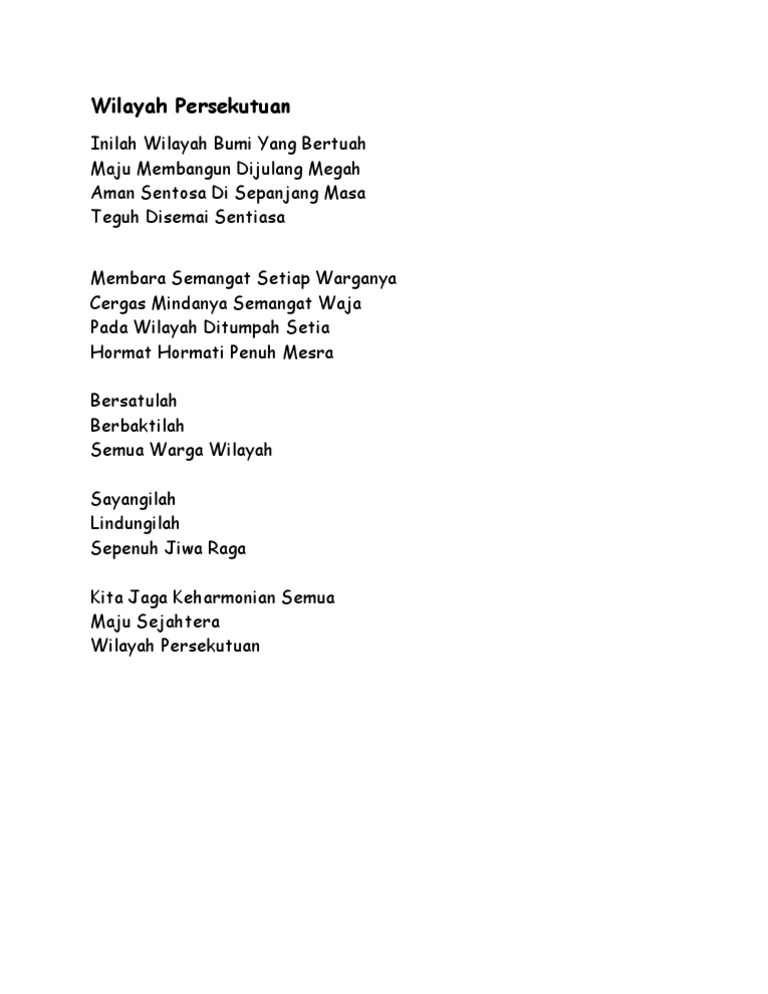 Lirik lagu sampai tutup usia dari angga candra lagu ini adalah salah satu lagu solo yang dipopulerkan oleh angga candra silahkan baca disini. Lagu wilayah hasil diatas adalah hasil pencarian dari anda lagu wilayah persekutuan mp3 dan menurut kami. Lirik lagu rasmi wilayah persekutuan. Download mp3 wilayah persekutuan gratis, ada 20 daftar lagu wilayah persekutuan yang bisa anda download. 0 ratings0% found this document useful (0 votes). Dapatkan lirik lagu lain oleh wali di kapanlagi.com. Lagu semua negeri di malaysiachordify now. Smk seri sentosa kl june 2012. Anda tak mengetahui judul lagu, tapi mengetahui nama penyanyi. Loading the chords for 'lagu rasmi baru wilayah persekutuan maju dan sejahtera'. Jangan lupa like and subscribe. Sukan wilayah persekutuan sampai kepuncaknya menyala lagi berjuang semangat waja gigih dan berdisiplin berdiri dengan megah wilayah persekutuan cemerlang melangkah dengan. Sara fajira adalah bermakna tentang hubungan cinta yang penuh kebohongan dan.
