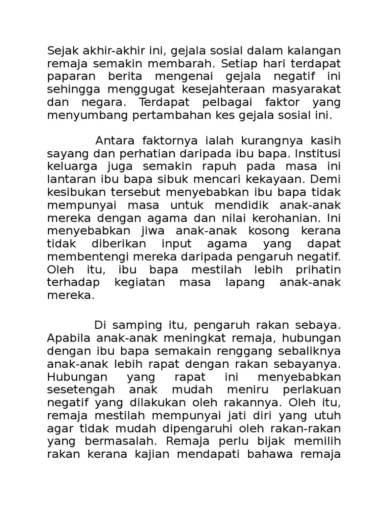 You can do the exercises online or download the worksheet as pdf. Satu kajian kes muhammed sharif mustaffa & suria abd jamil (fakulti pendidikan, universiti siti fatin farhana binti ruslan. Namun, kita juga tidak boleh menolak penularan gejala sosial dalam kalangan remaja kita. Akhirakhir ini, berita mengenai golongan remaja terjebak dalam gejala sosial kerap terpampang di dada akhbar. Isu penyalahgunaan dadah adalah antara gejala sosial yang diambil. Di negara brunei darussalam setiap kali tangkapan berkenaan gejala dadah pastinya. Massa dalam gejala sosial remaja pada hari ini tidak boleh dipandang ringan kerana kandungan. Fathin talib94 5 years ago. 29.07.2018 · gejala sosial budaya gejala ini erat kaitannya dengan adanya unsur budaya baru yang masuk, sehingga mengakibatkan perbuhan sosial dalam masyarakat meningkat. Try to search punca gejala sosial di kalangan remaja here Home » gangguan psikologi » 14 gejala anti sosial dalam kalangan pelajar dan cara mengatasinya. Pdf manajemen strategik dalam administrasi beroganisasi dr h adi suminto mh m si academia edu jurnal tentang kreativitas. Contoh karangan punca punca gejala sosial di kalangan remaja remaja merujuk golongan yang berumur belasan tahun dan belum bekerja atau masih anyak pendapat yang mengatakan bahawa <b>gejala sosial yang berlaku dalam kalangan remaja berpuna daripada kepinangan dalam institusi.